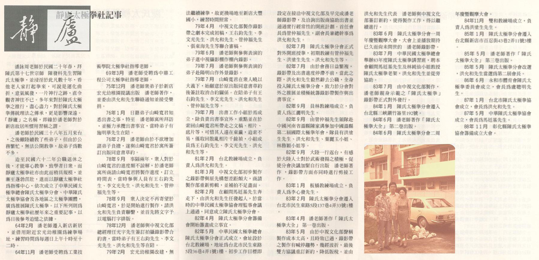 75年12月~83年4月間,陳氏太極拳大全出書;從拍攝、校稿至出版第一卷,費時七年又四個月,84年6月第二卷出版,85年5月第三卷出版。