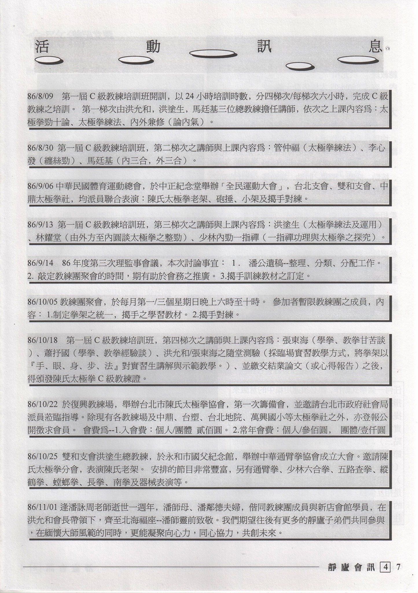 靜廬太極拳社記事