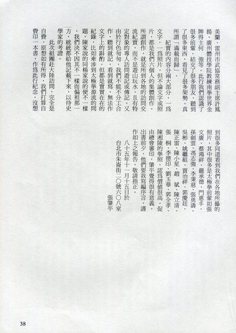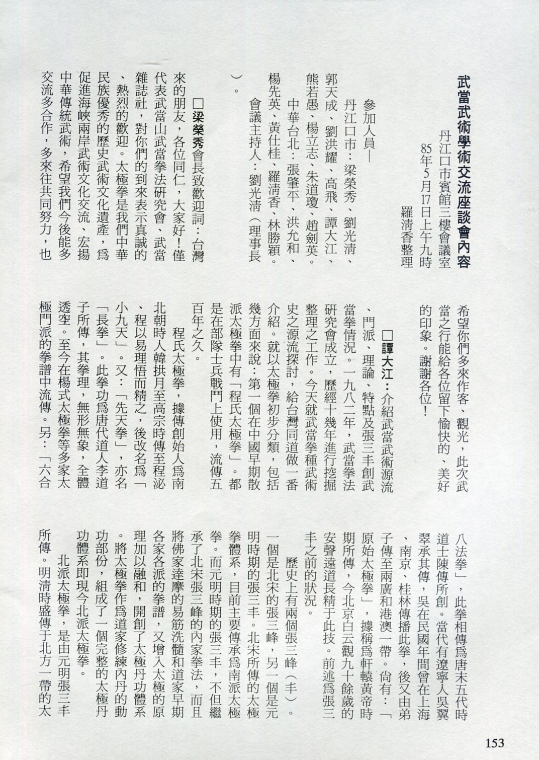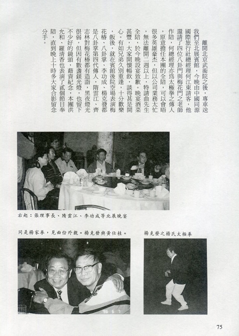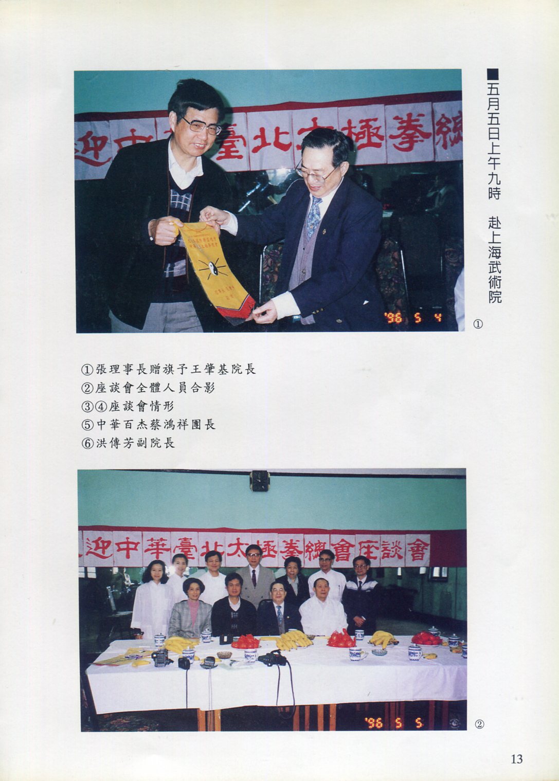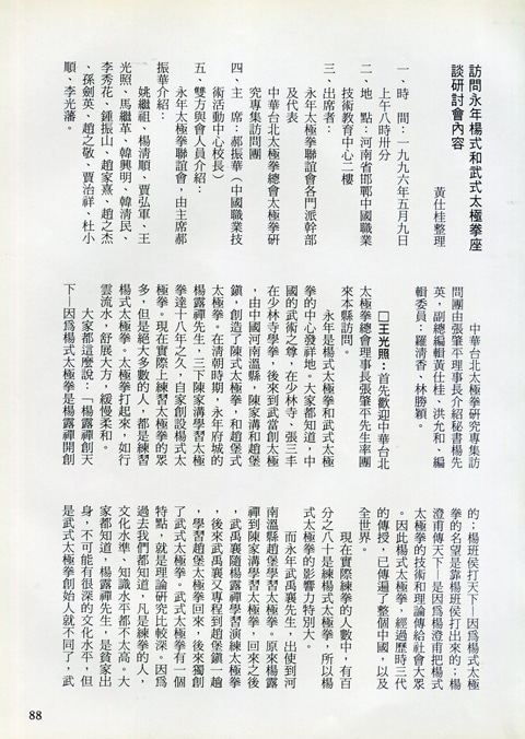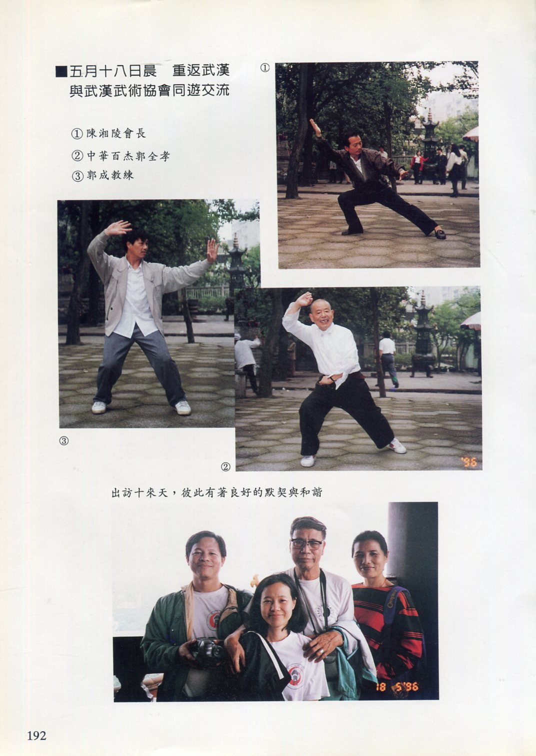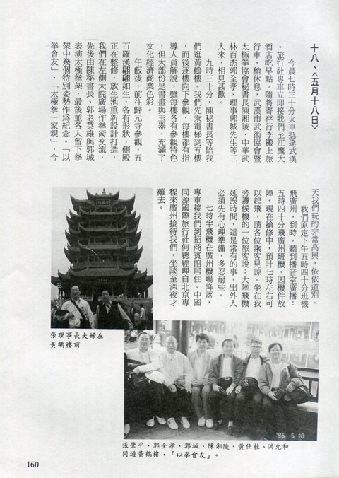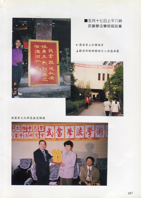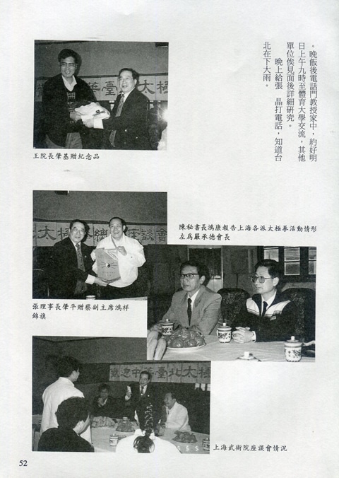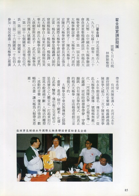 85年(1996)5月,由中華民國太極拳總會主辦兩岸太極拳訪問交流紀實。