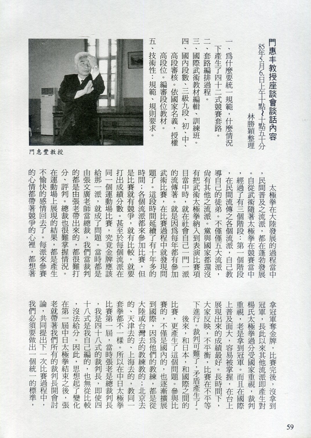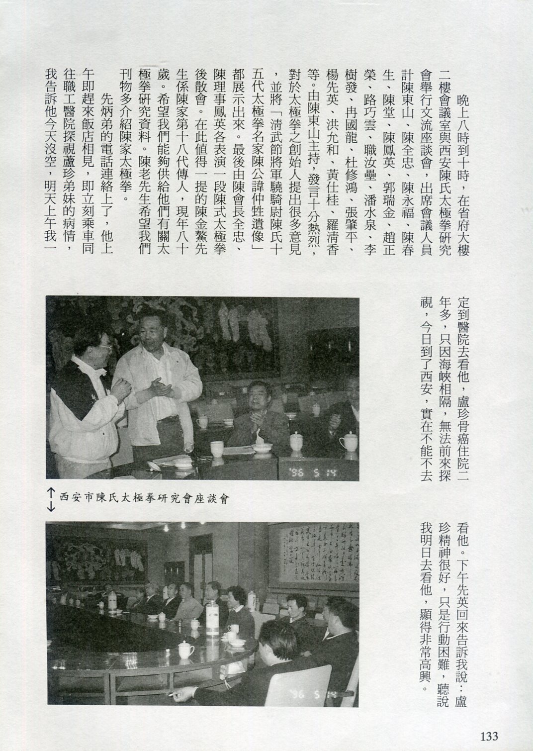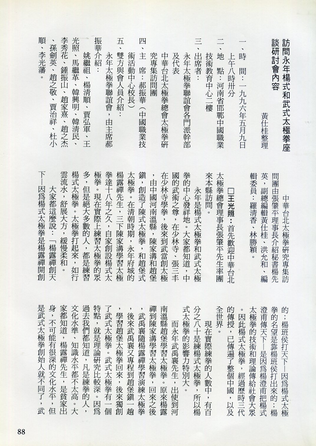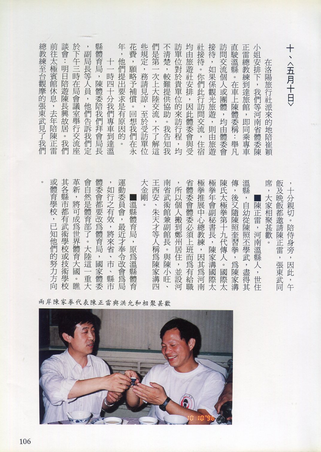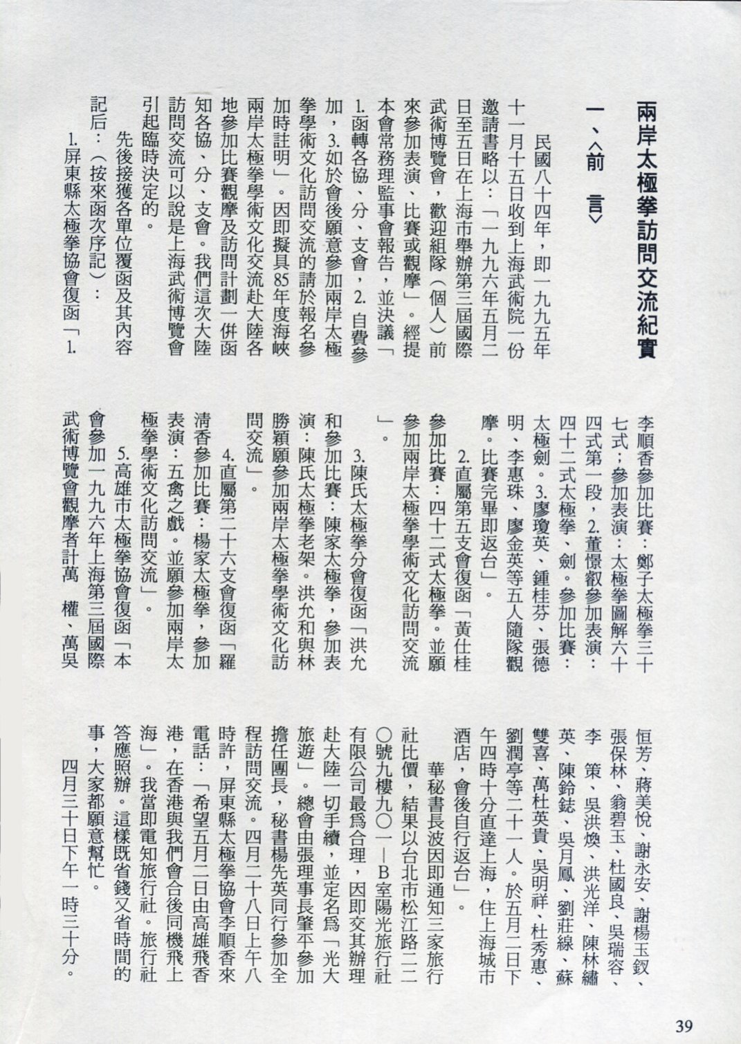 85年(1996)5月,由中華民國太極拳總會主辦兩岸太極拳訪問交流紀實。