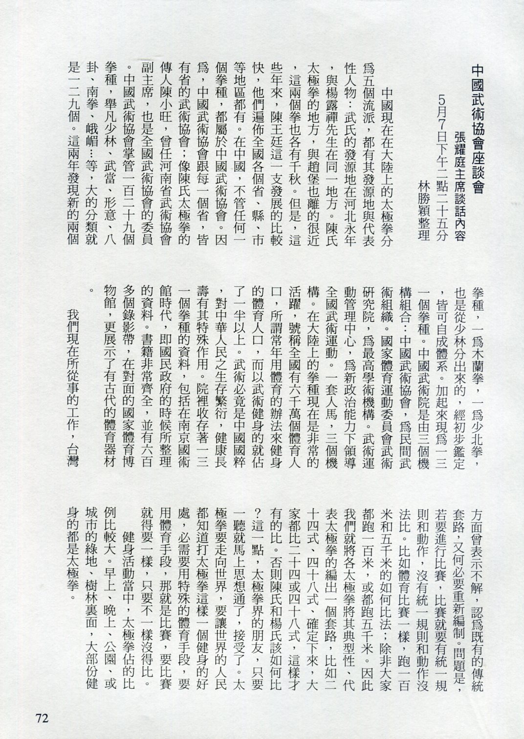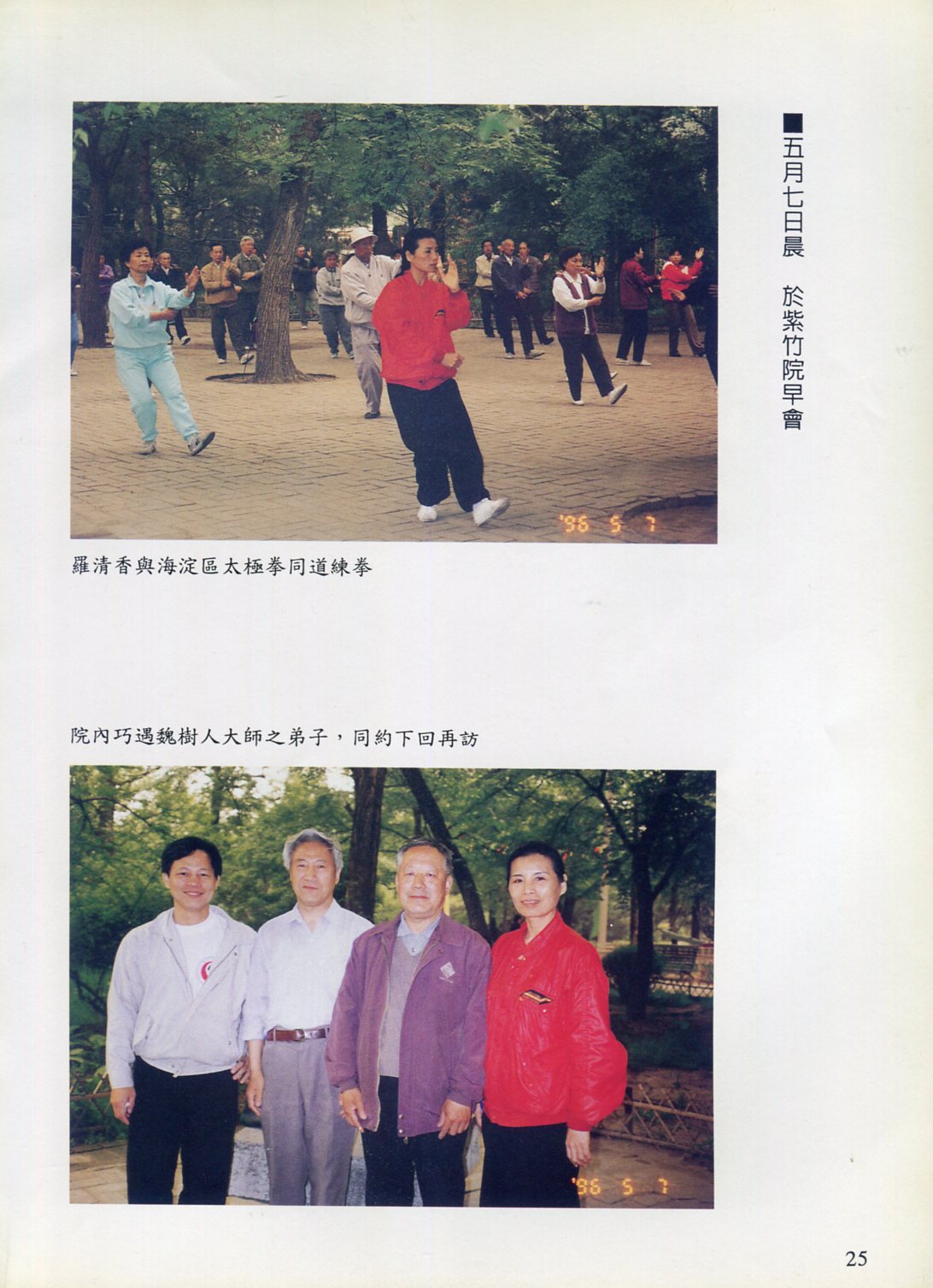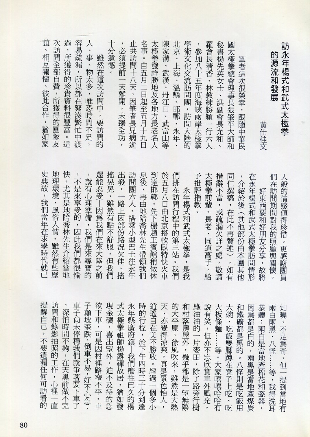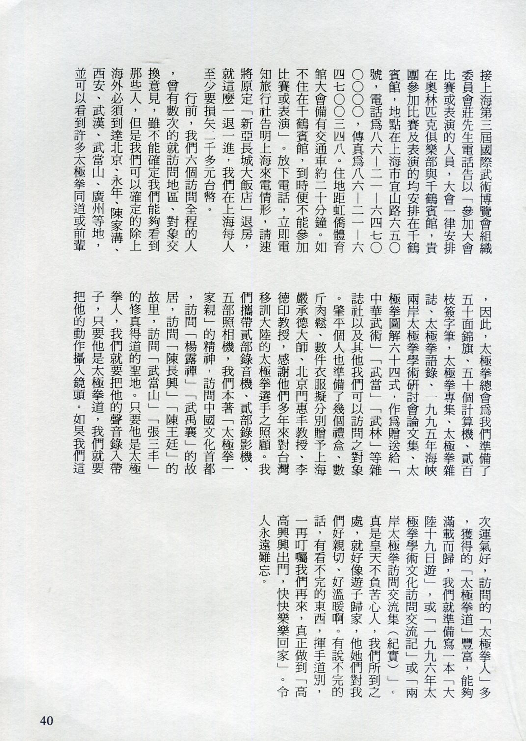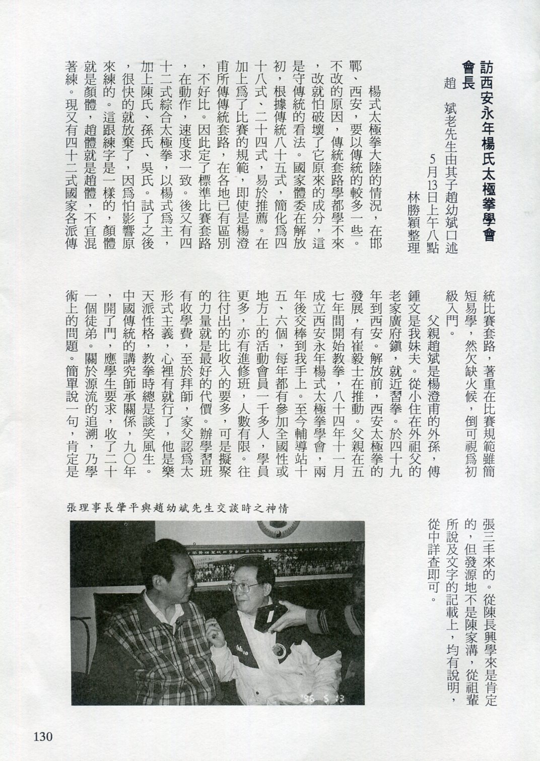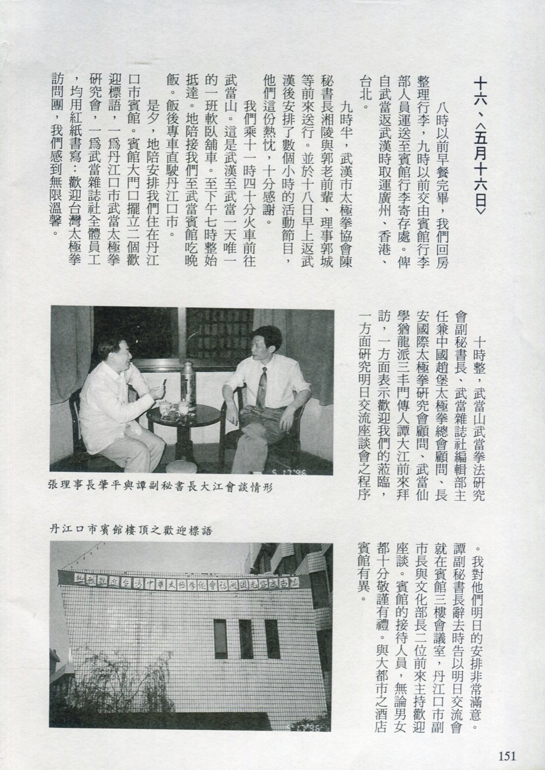 85年(1996)5月,由中華民國太極拳總會主辦兩岸太極拳訪問交流紀實。