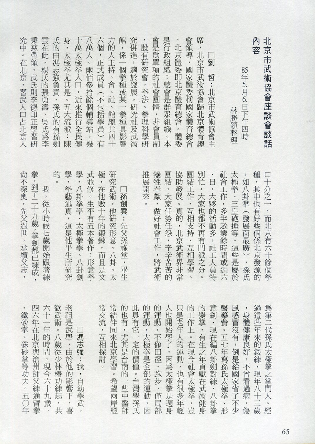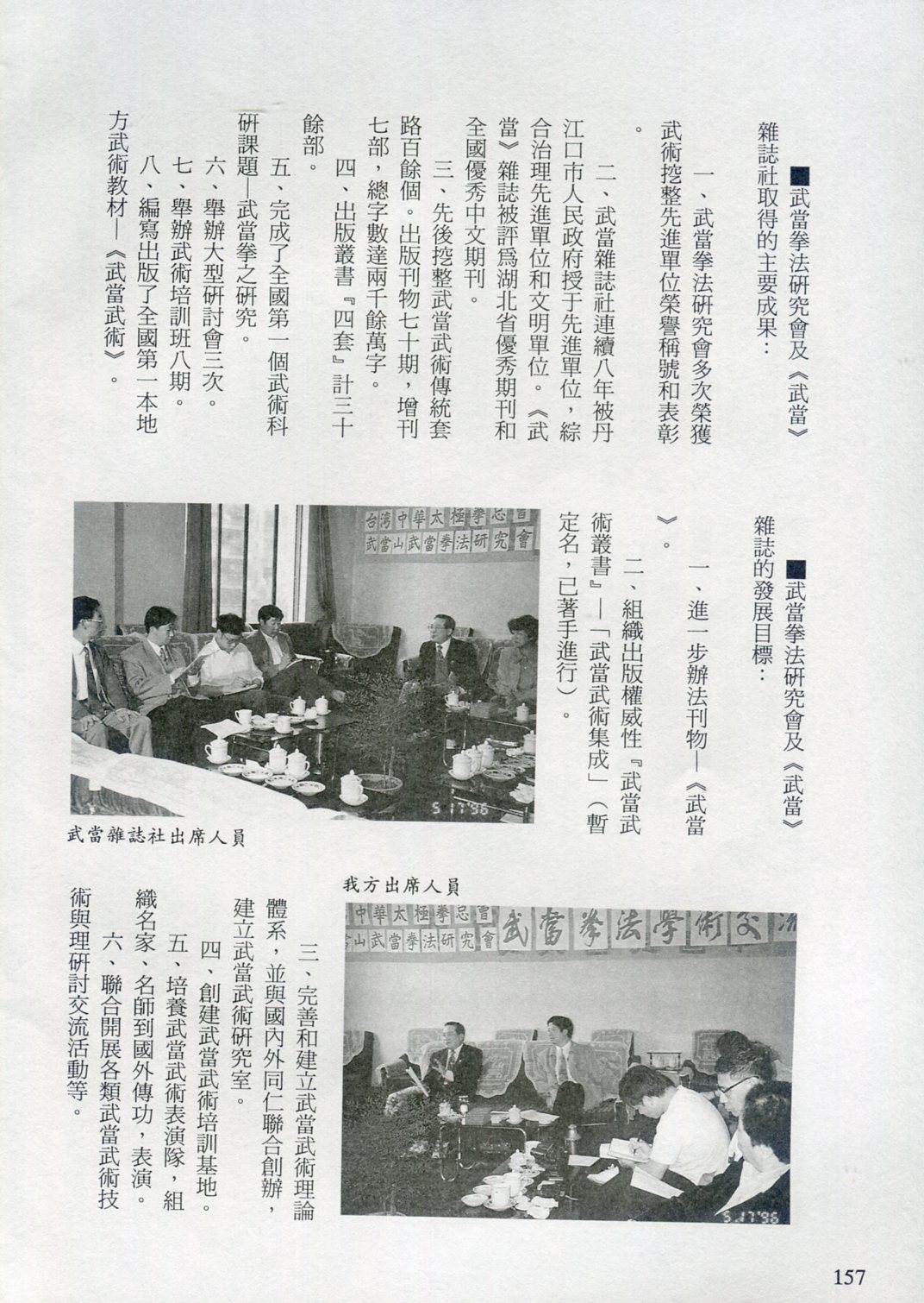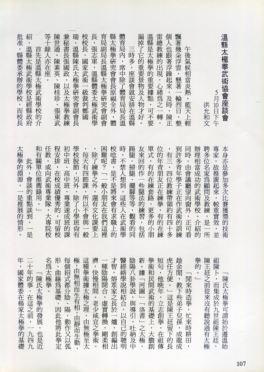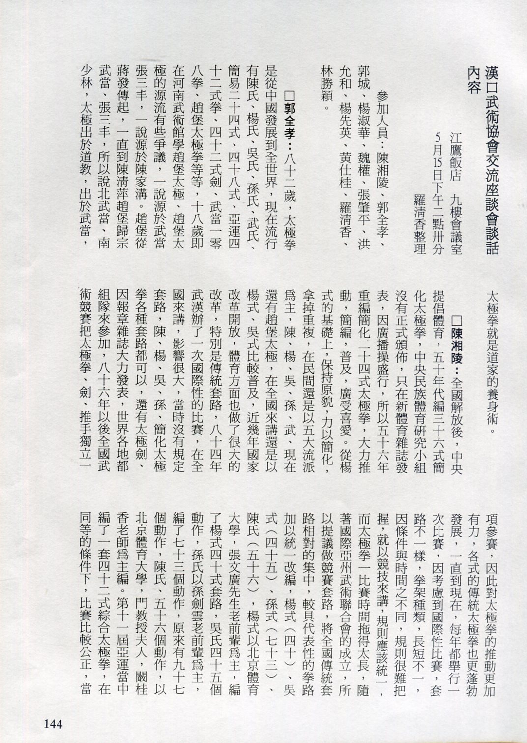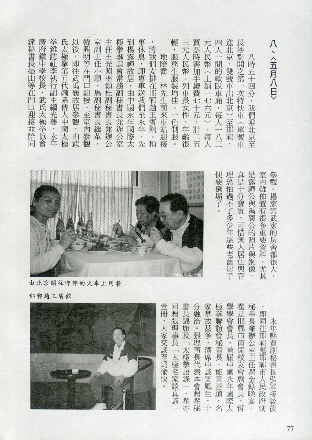 85年(1996)5月,由中華民國太極拳總會主辦兩岸太極拳訪問交流紀實。