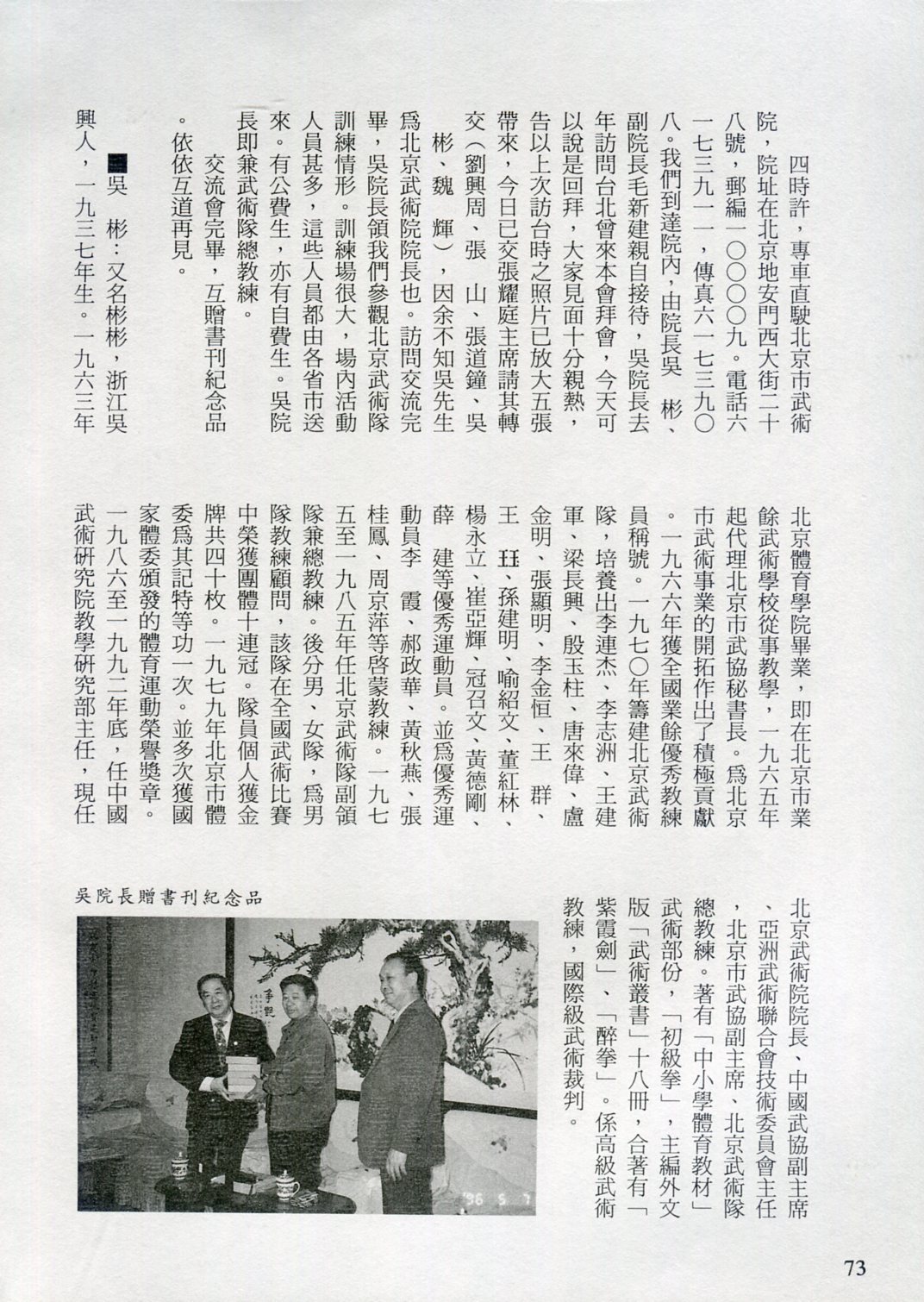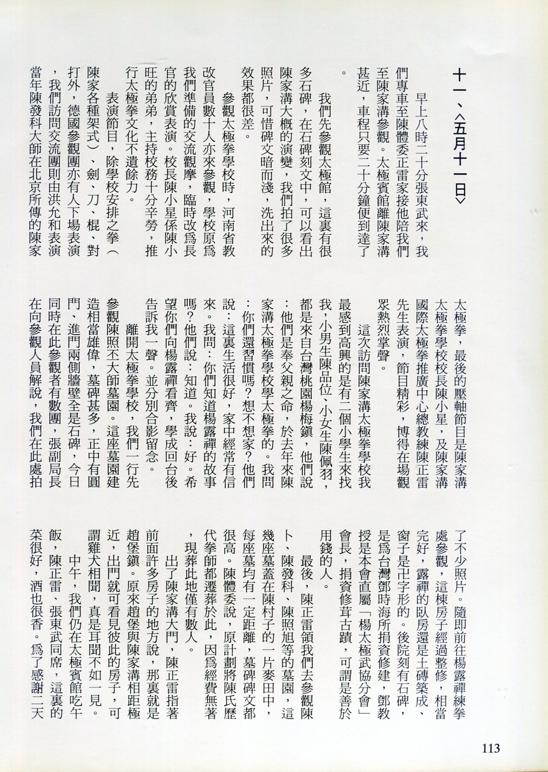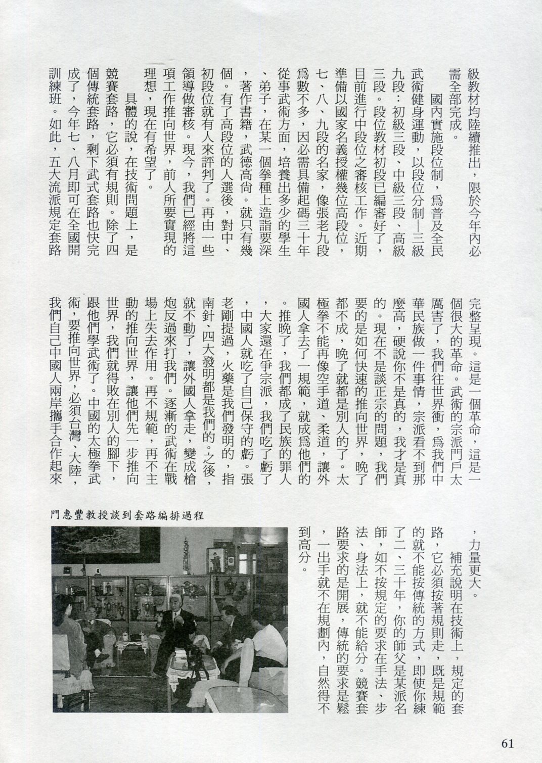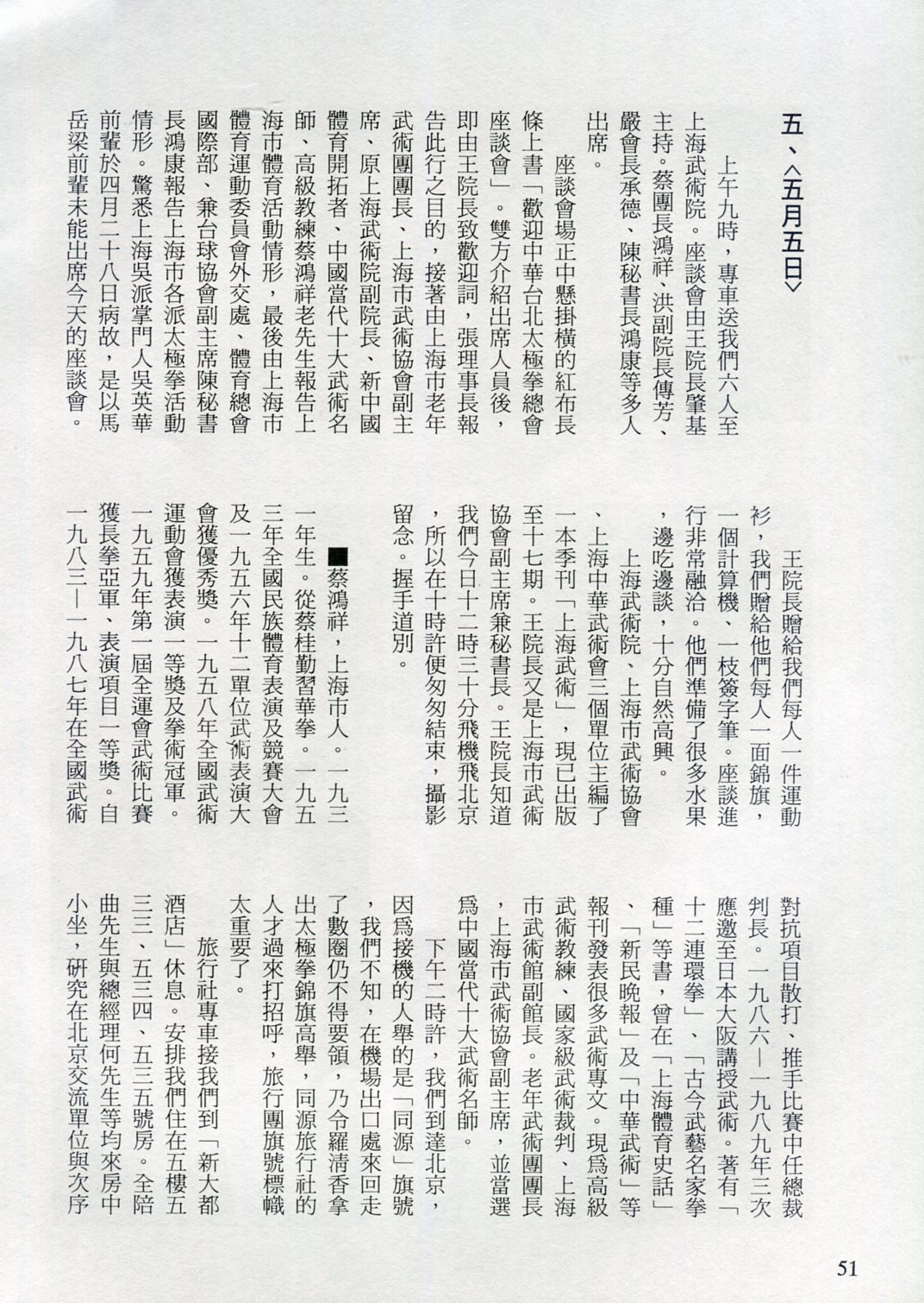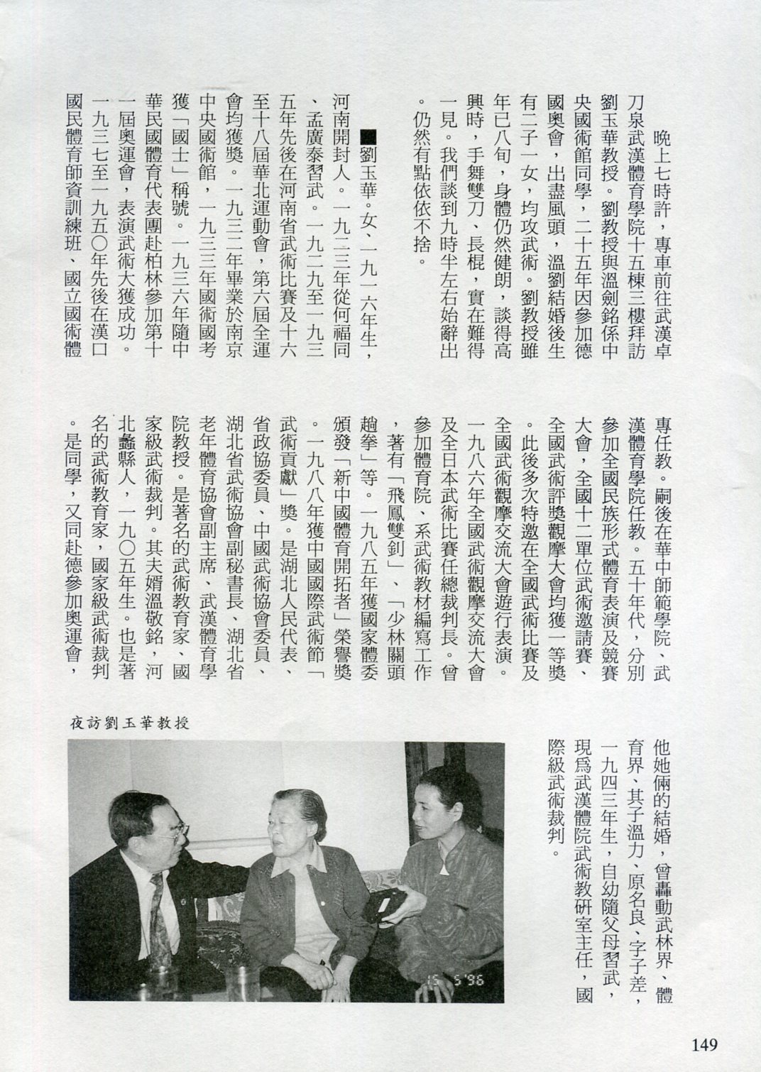 85年(1996)5月,由中華民國太極拳總會主辦兩岸太極拳訪問交流紀實。